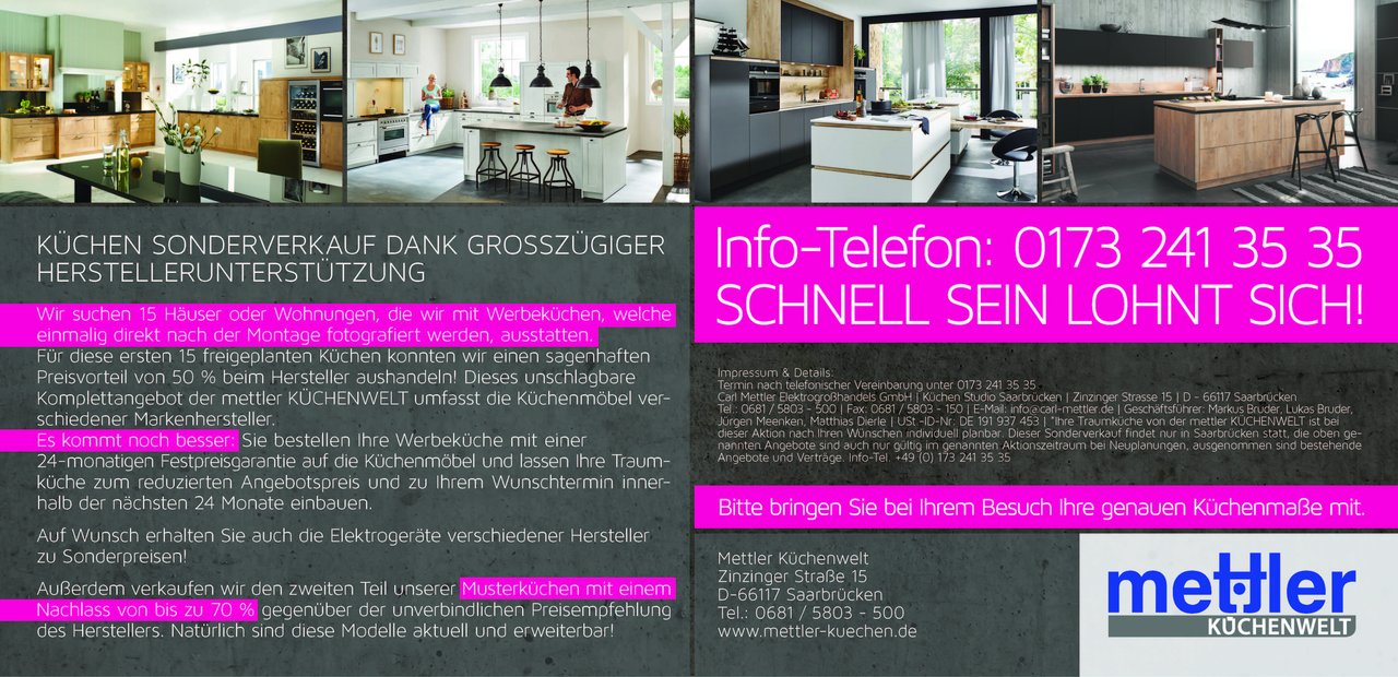 Die Produkte, die Mettler verkauft, sind alle Eins A. Und das bei Preisen, die wirklich in Ordnung sind. Wir haben uns verliebt in unsere neue Küche. So macht Kochen richtig Spaß. Wir sind sehr zufrieden.